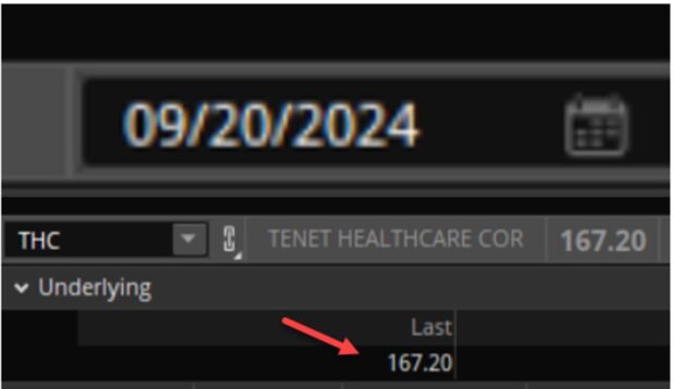 Closing price of THC on expiration Friday