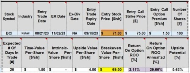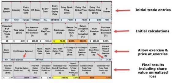 - 8/18/2023 (expiration Friday): Allow exercise of the put with BCI trading at $71.00